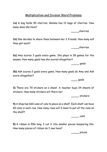 Word problems are fun and challenging to solve because they represent actual situations that happen in our world. math2x + 3 = 15/math. The division problems do not include remainders. Learn how to use multiplication and division in word problems.we hope you are enjoying this video! Apply long division method if necessary. Each printing machine costs $4,500. Read the tips and guidance and then work through the multiplication and division word problems in this lesson with your children. The students have to use the correct operation according to each question to answer the problems. Here you will find our multiplication word problem area for 2nd graders which will help your. Multiplication and division word problems. Times as many, times as much, find all if each. Here are some questions based on the same concept for you to practice. This resource gives your students practice with multiplication and division word problems.